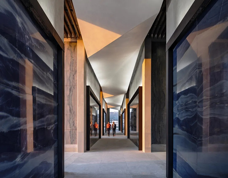 公墓分層設(shè)立的陽臺(tái)、庭院和梯田式花園從建筑向外延伸,提供眺望點(diǎn)、寬敞的座位以及一個(gè)適合沉思的空間。