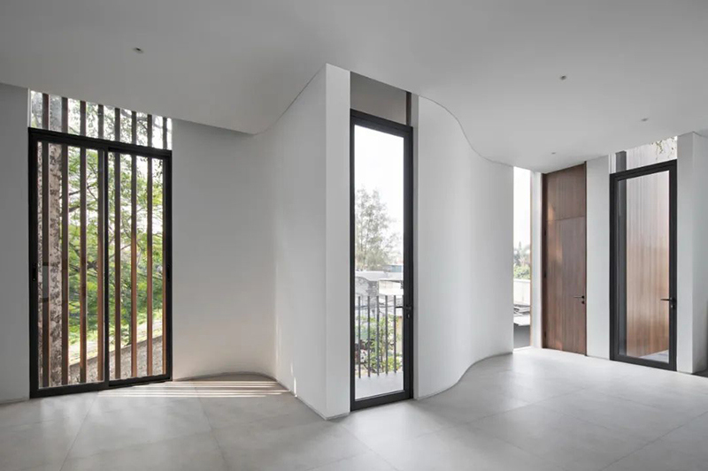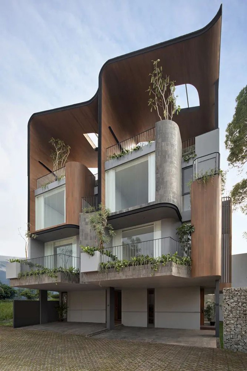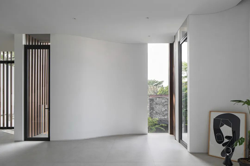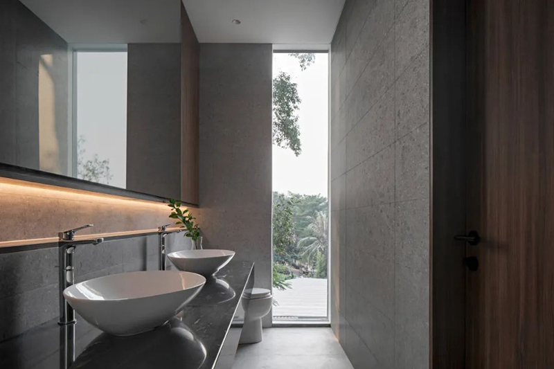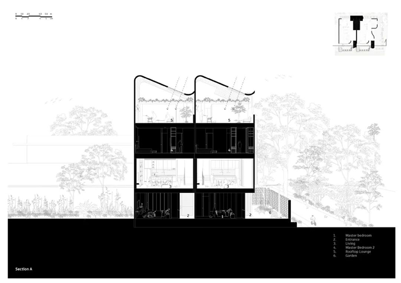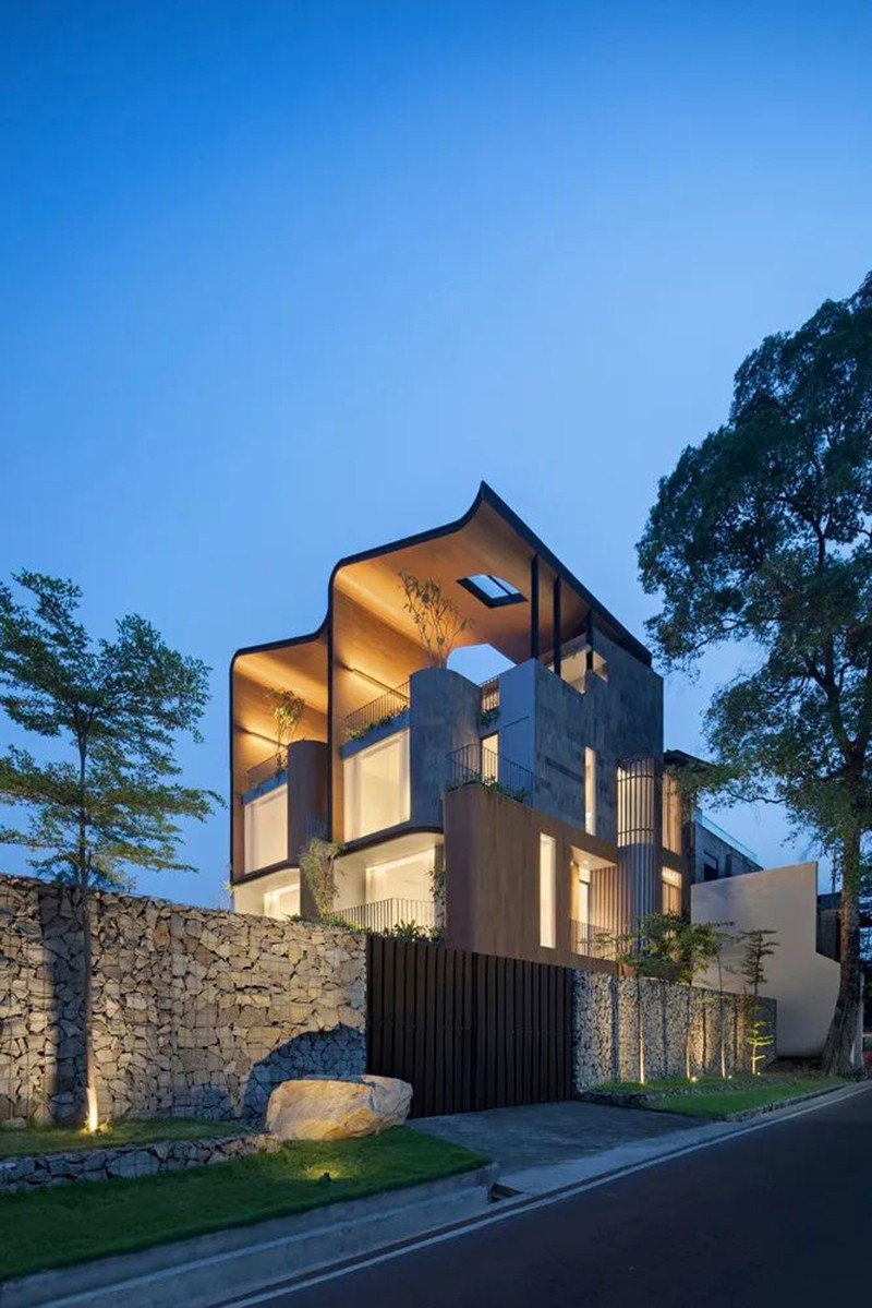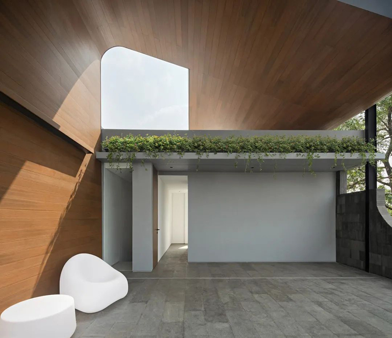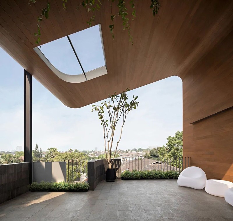 項(xiàng)目打破傳統(tǒng)庭院的平面布局,巧妙地將東南亞住宅常見的“家庭后院”概念垂直延伸至屋頂,使大自然得以在更高處生長,生活也隨之向上拓展。