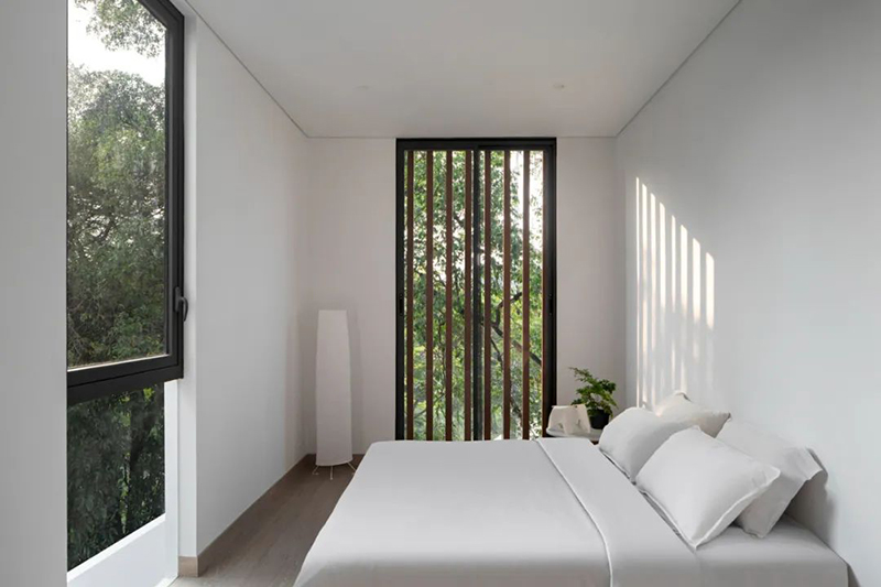 設(shè)計(jì)中整合了多個(gè)露臺,為住戶提供了與自然互動的立體空間。寬敞的屋頂不僅讓人們在欣賞周邊景致的同時(shí)享受戶外活動,還通過遮蔭結(jié)構(gòu)降低了室內(nèi)熱量的輸入,減少了對空調(diào)與人造照明的依賴,從而構(gòu)建出更節(jié)能、可持續(xù)的生活模式。
